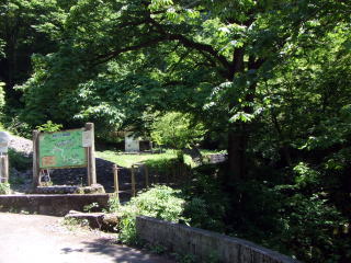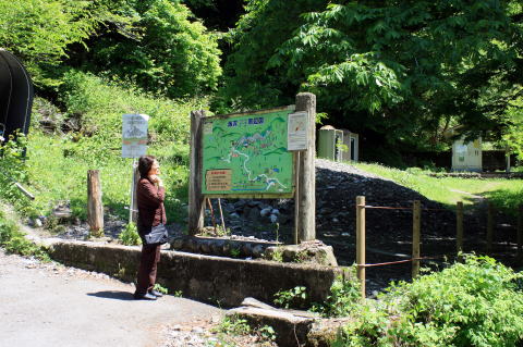 林道を上ってくると道幅が広くなり案内板が見えてくる
