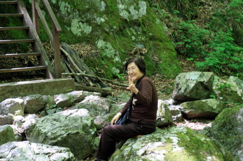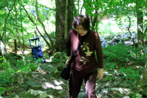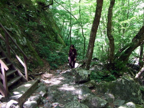 天気が良くて夏を思わせる暑い日になったのを理由に涼しい所へ行こうと、多少強引にママさんを連れて足場が悪い遊歩道を登って行きました。
